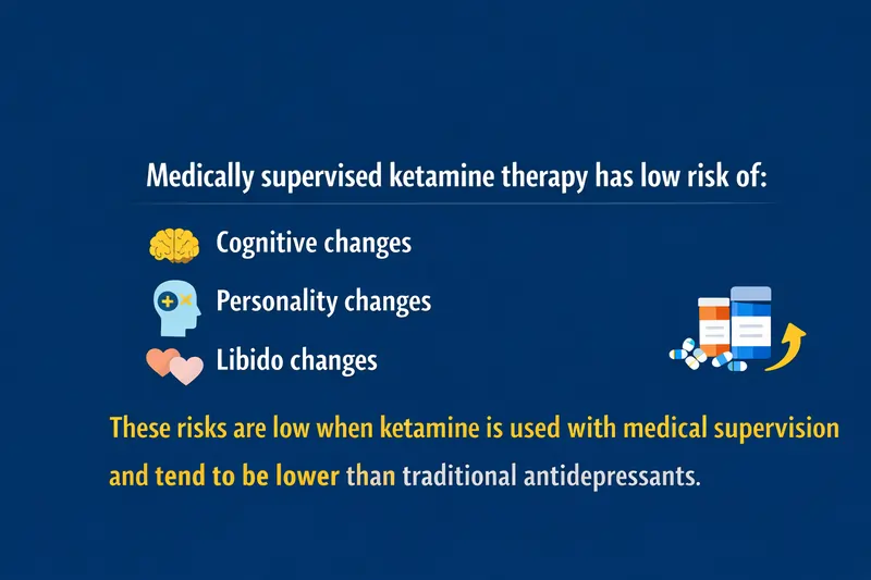 When Ketamine therapy is under medical supervision, its benefit–risk profile in treatment-resistant depression and suicidal ideation is favorable compared with untreated severe mood disorders. While Ketamine therapy is quite safe, it's not risk free.